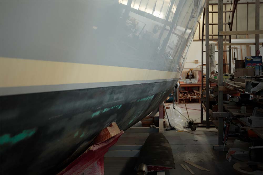 Documentazione fotografica dedicata alla fase di lavorazione in ambito nautico.